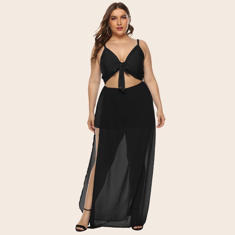 Женское летнее пляжное шифоновое однотонное длинное платье большого размера с воротником-бабочкой, сексуальное черно-синее платье без бретелек