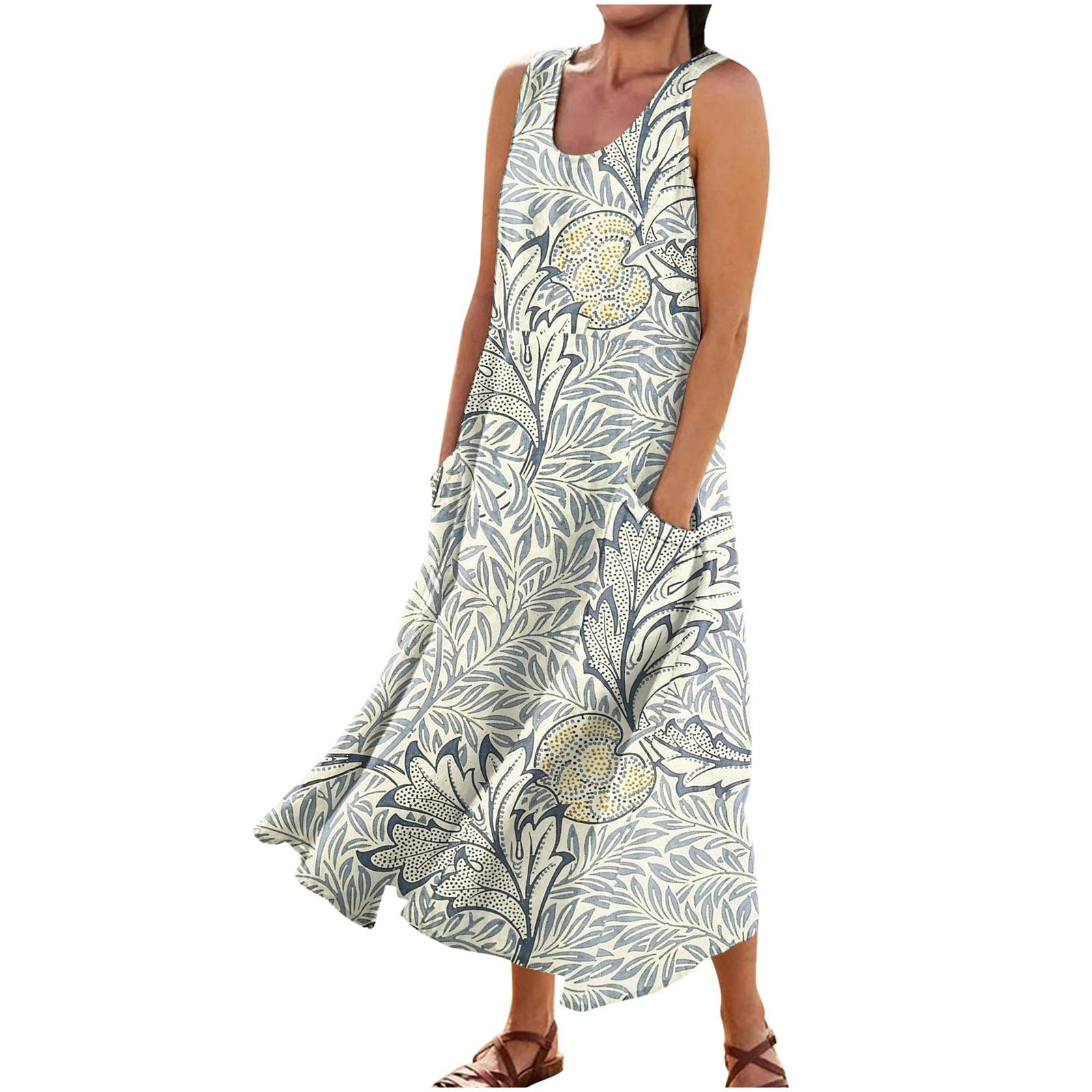 Женское летнее повседневное модное платье без рукавов с круглым вырезом и карманом в стиле ретро S
