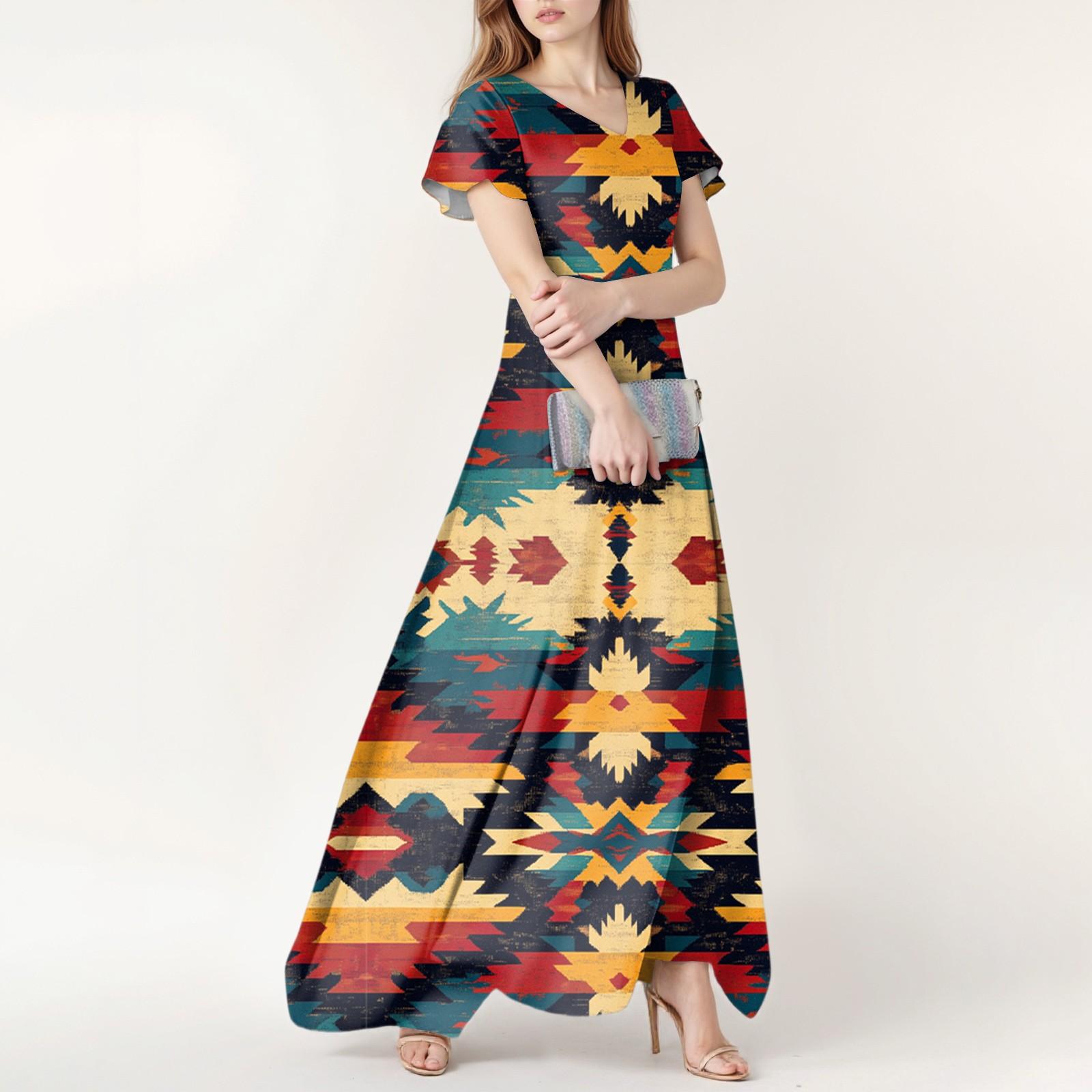 Женское летнее повседневное модное платье в стиле бохо с принтом и V-образным вырезом, с коротким рукавом M чёрный