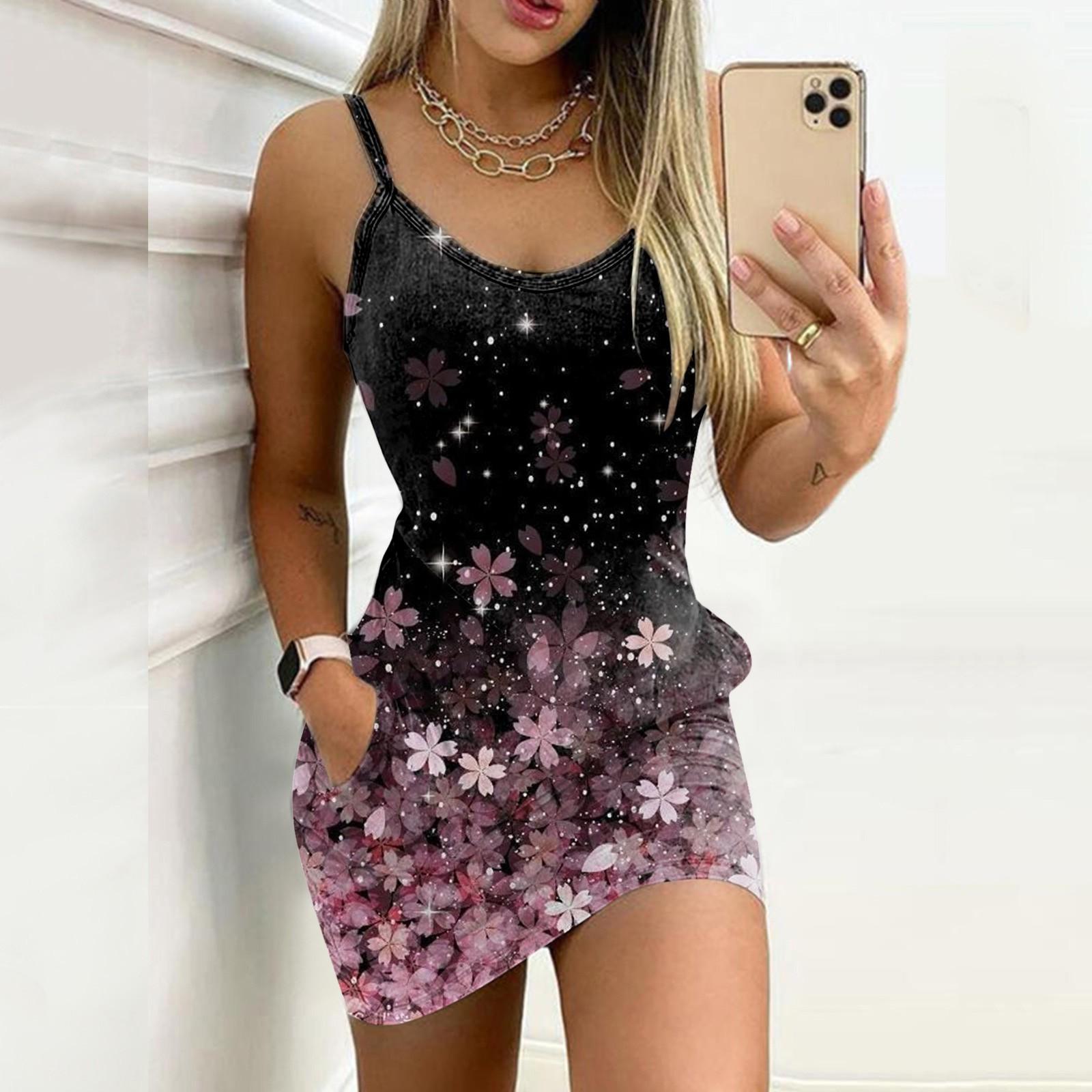 Женское летнее повседневное модное платье с V-образным вырезом и карманом на бретельках L фиолетовый