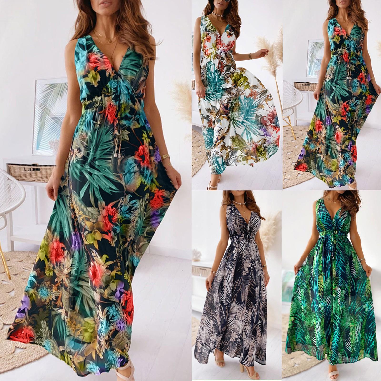 Женское летнее повседневное платье-пуловер без рукавов с эластичной резинкой на талии и v-образным вырезом с принтом