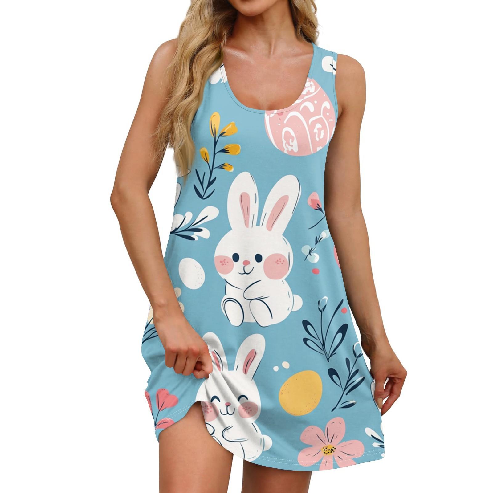 Женское летнее повседневное платье с квадратным воротником и пасхальным принтом, платье без рукавов с карманами L синий