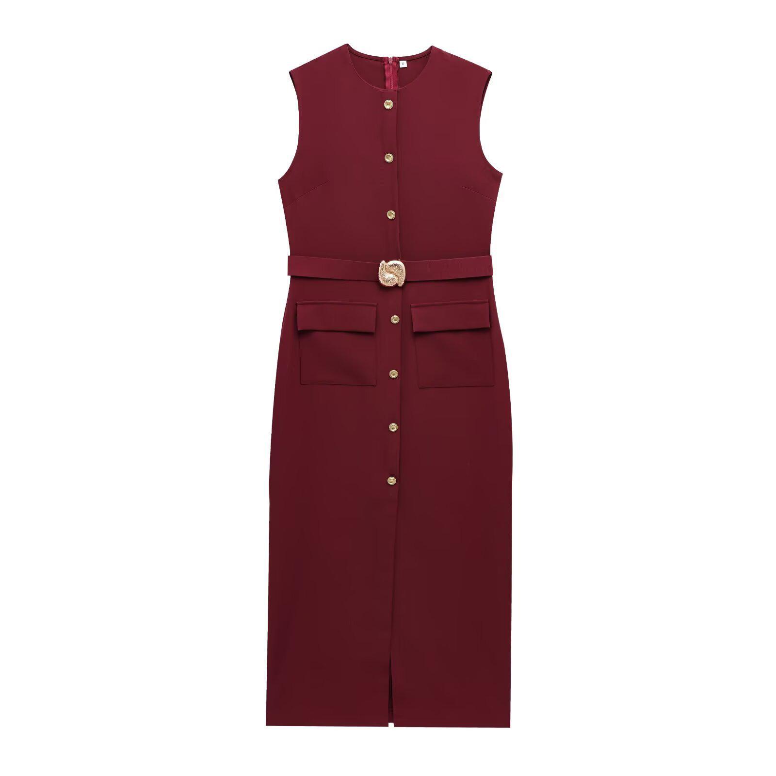 Женское летнее приталенное платье с поясом и жаткой TAOP&ZA XS бордовый