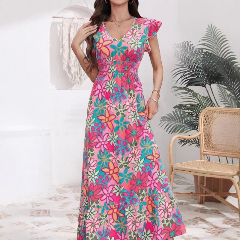 Женское летнее свежее милое праздничное платье в стиле «модный цветочный принт» с небольшими рукавами-крылышками XXL