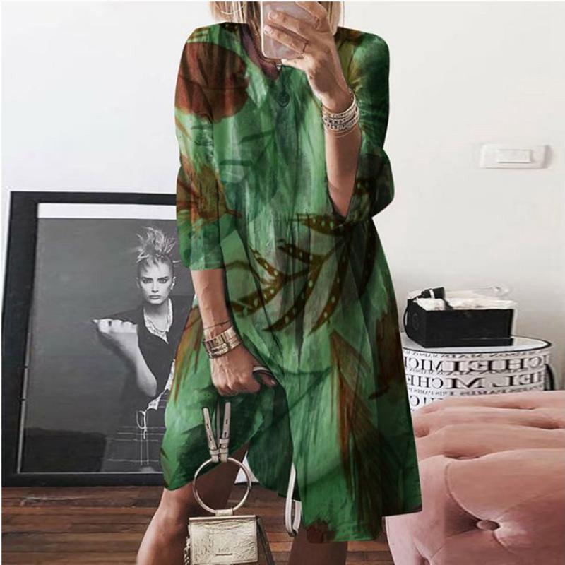 Женское летнее тонкое повседневное платье с круглым вырезом и принтом в стиле ретро