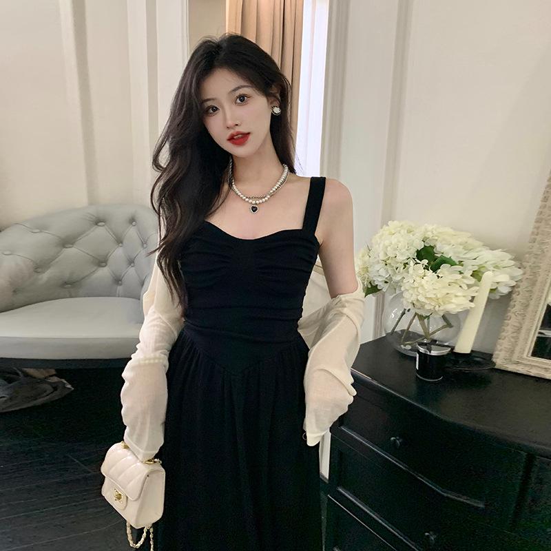 Женское летнее черное платье на тонких бретельках, облегающее фигуру - слегка зрелый стиль XXXL