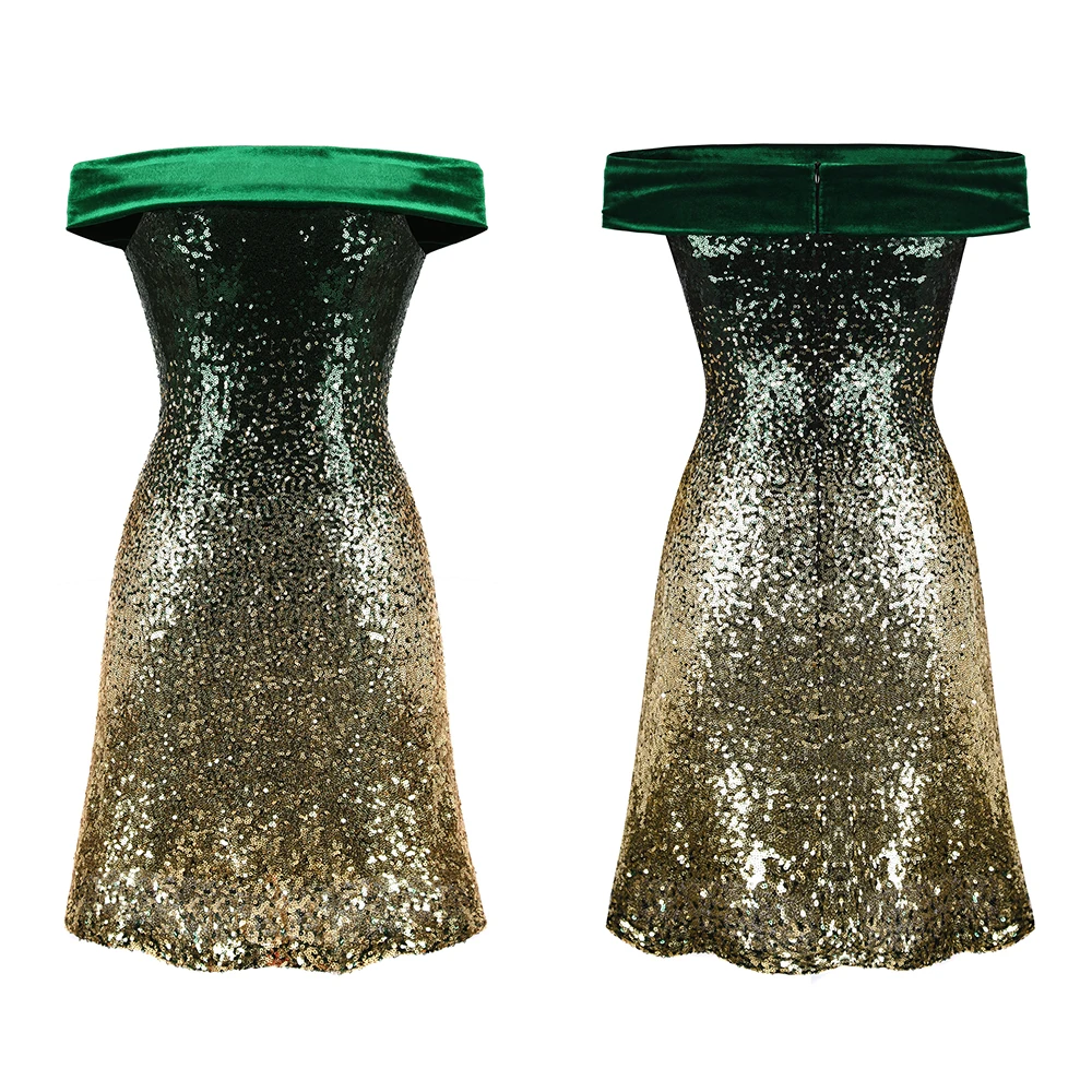 Женское мини-платье с блестками Angel-fashions, блестящее ТРАПЕЦИЕВИДНОЕ короткое платье с открытыми плечами, расшитое блестками, с оборками на по...