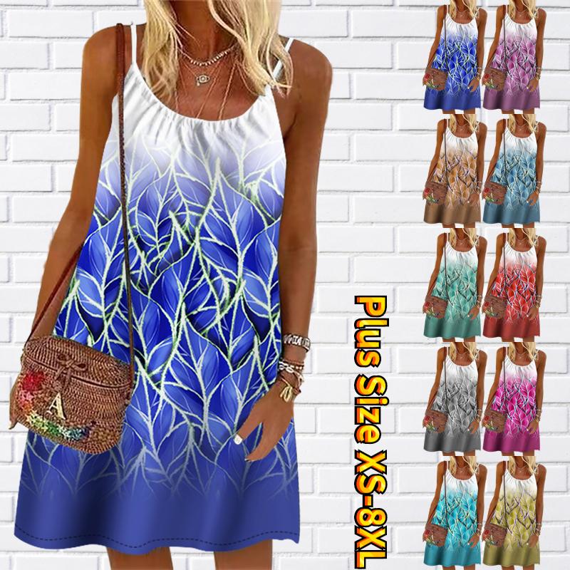 Женское мини-платье с цветочной каймой и принтом в виде листьев, вечернее платье без рукавов, летнее пляжное платье, сарафан