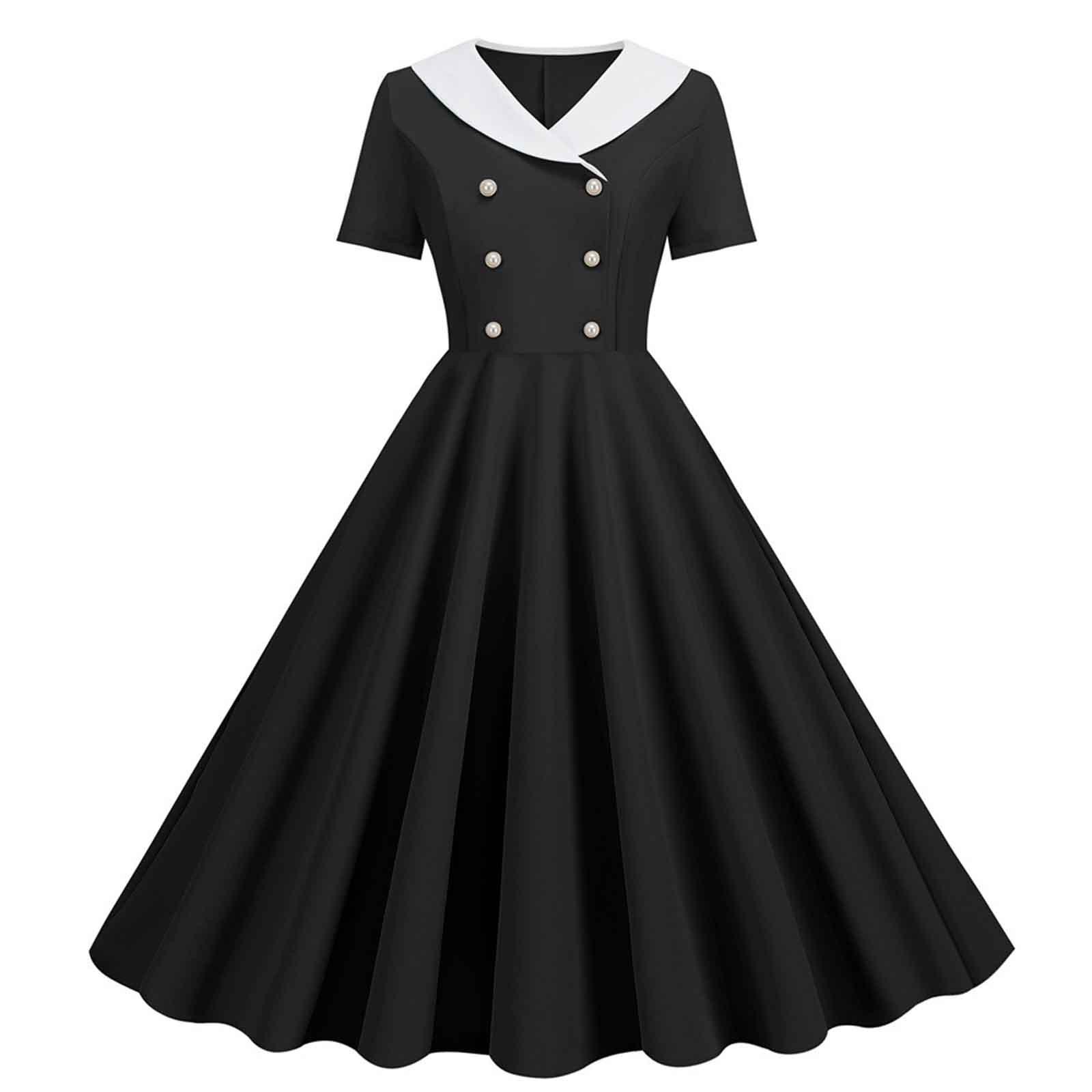 Женское модное двубортное тонкое и тонкое платье с v-образным вырезом в стиле ретро L чёрный