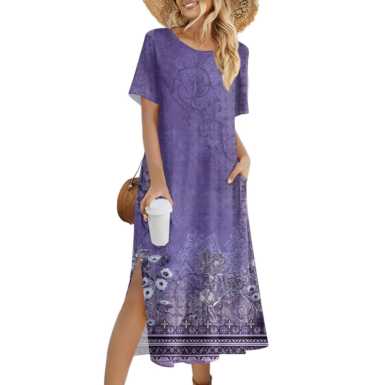 Женское модное летнее платье с цветочным принтом, повседневное пляжное платье, облегающее праздничное платье XL фиолетовый