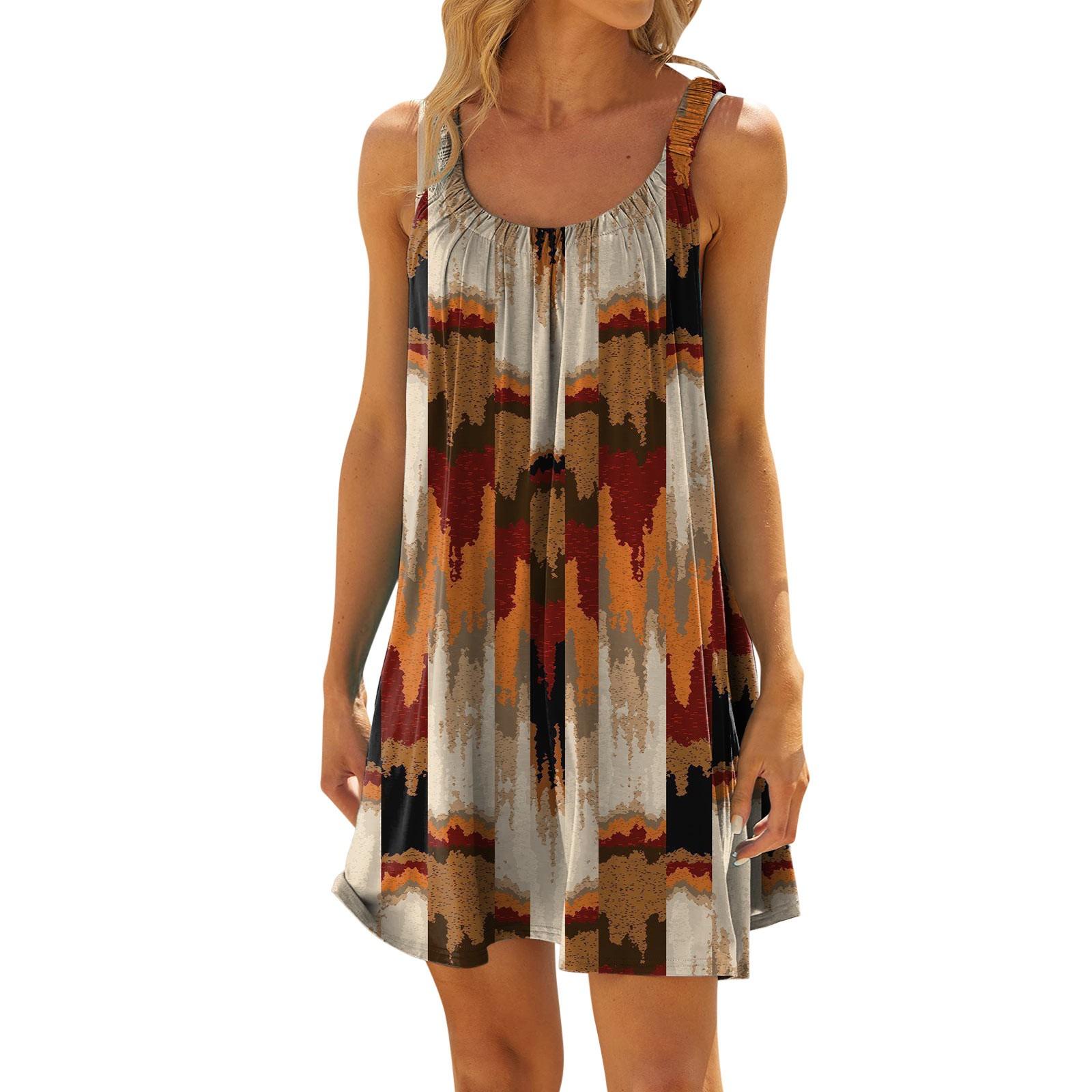 Женское модное летнее пляжное повседневное милое мини-платье без рукавов с принтом XXL коричневый