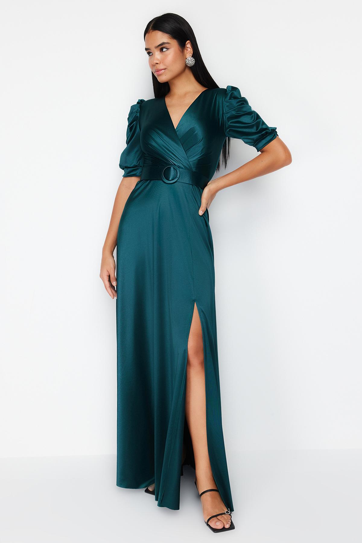 Женское модное новое вечернее платье и выпускное платье Изумрудно-зеленый пояс с детальным вязаным длинным вечерним платьем