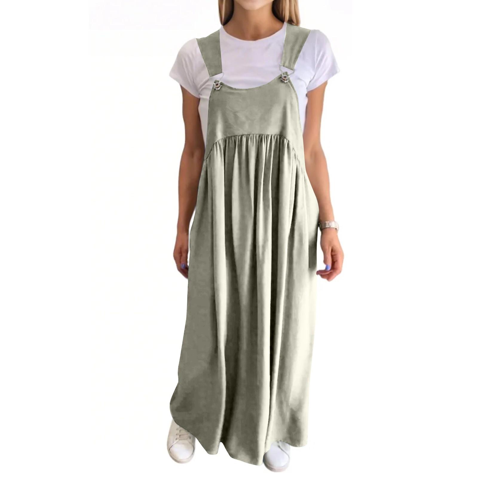 Женское модное однотонное платье из хлопка и льна с подтяжками, длинная юбка XXL армия зеленый