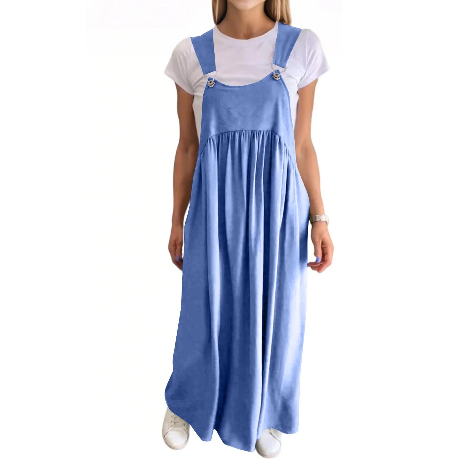 Женское модное однотонное платье из хлопка и льна с подтяжками, длинная юбка XXL синий