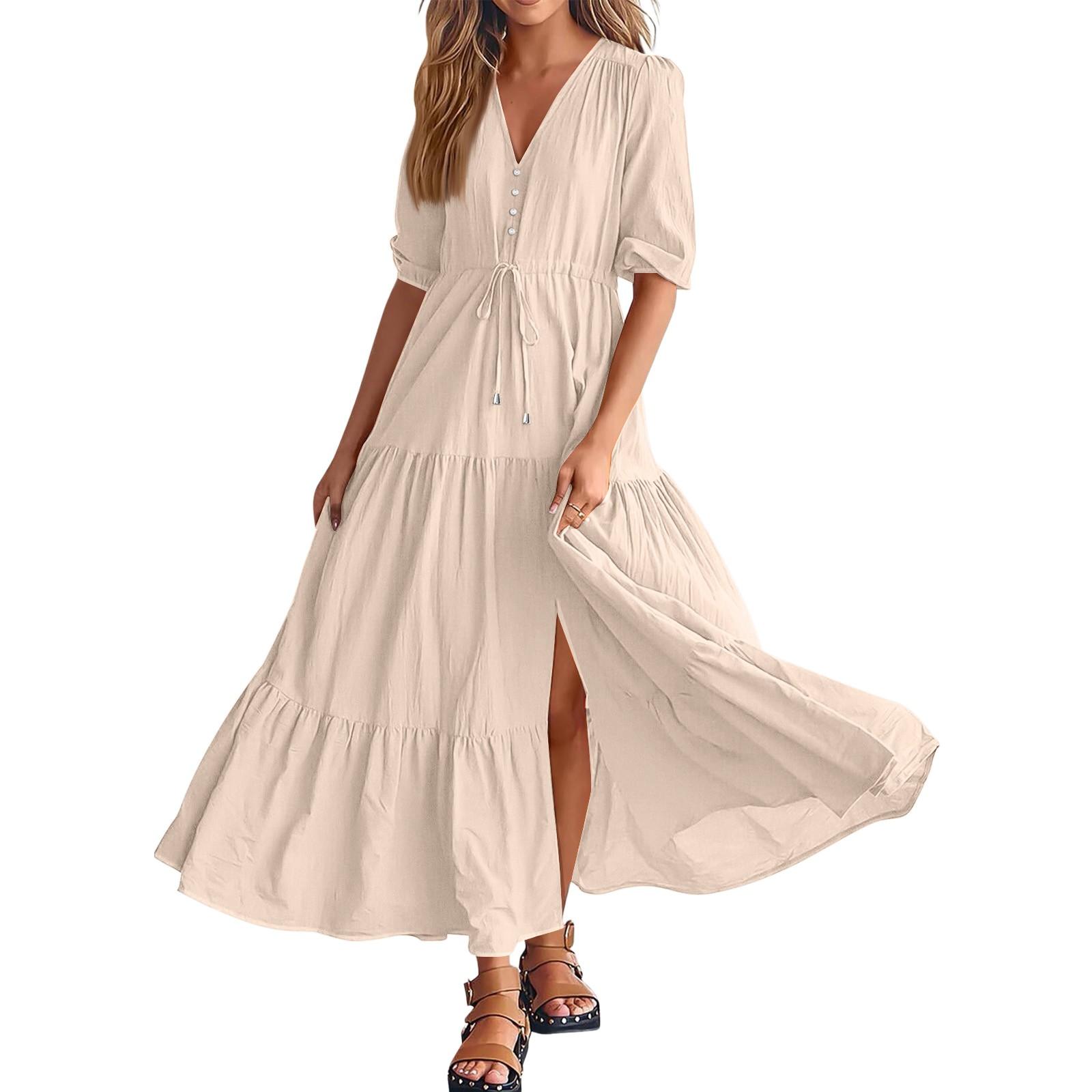 Женское модное однотонное элегантное платье с темпераментом, с вырезом на шее и поясом XXL бежевый