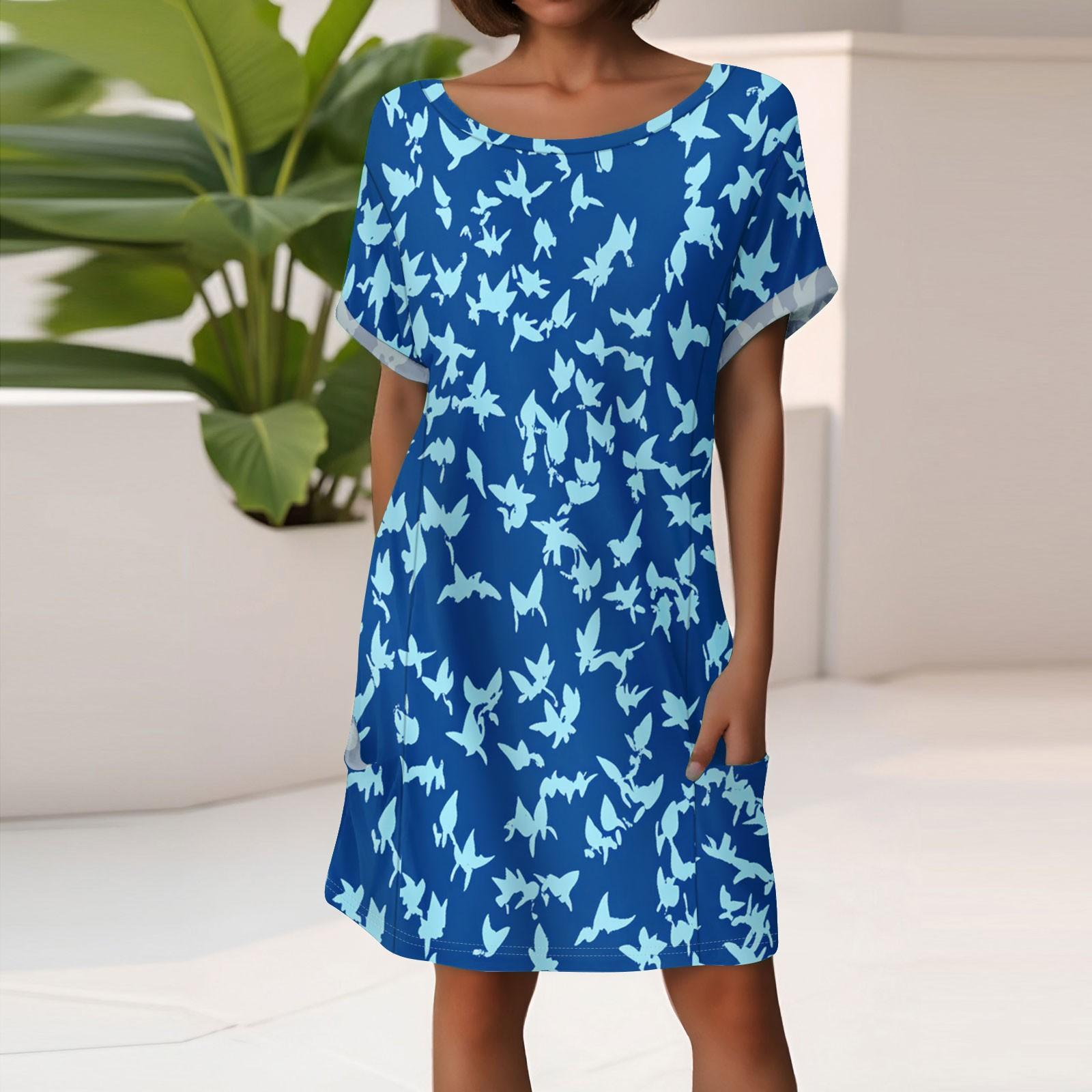 Женское модное платье с коротким рукавом и карманами, с цветочным принтом, повседневное пляжное платье M