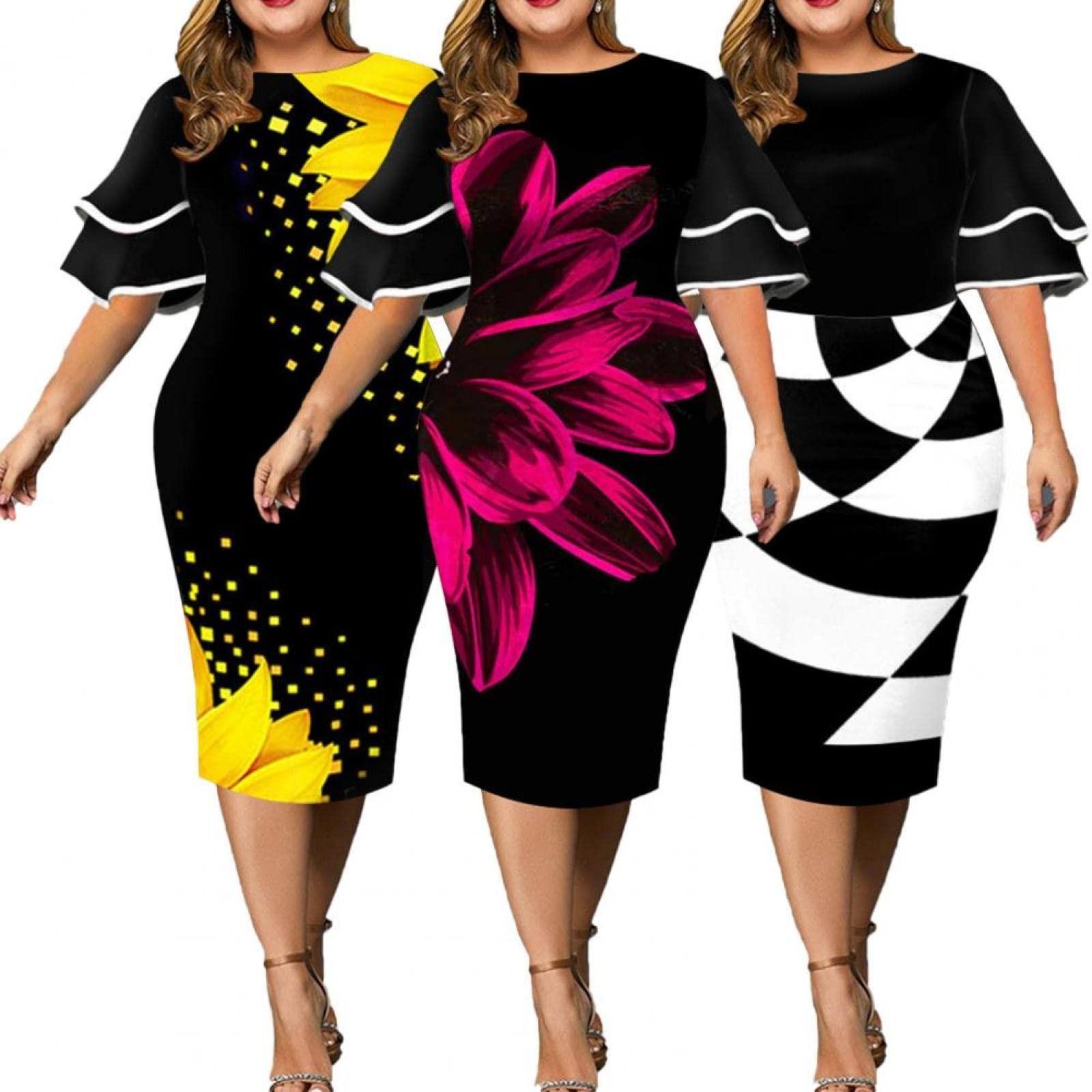 Женское модное платье с цифровым принтом и большими летящими рукавами, с короткими рукавами и обернутым бедром и круглым вырезом