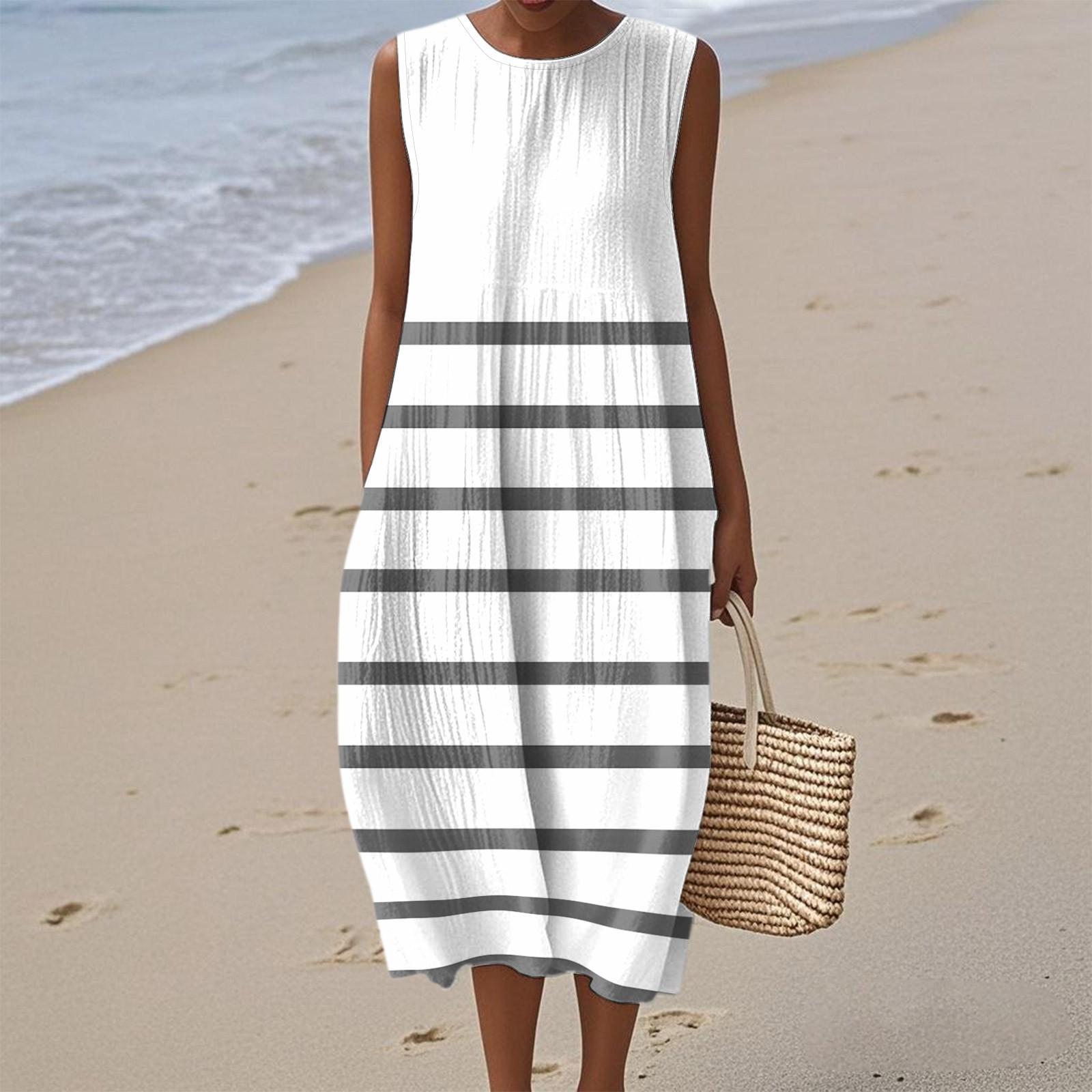 Женское модное повседневное платье без рукавов с круглым вырезом в полоску в горошек, элегантное, темпераментное XL