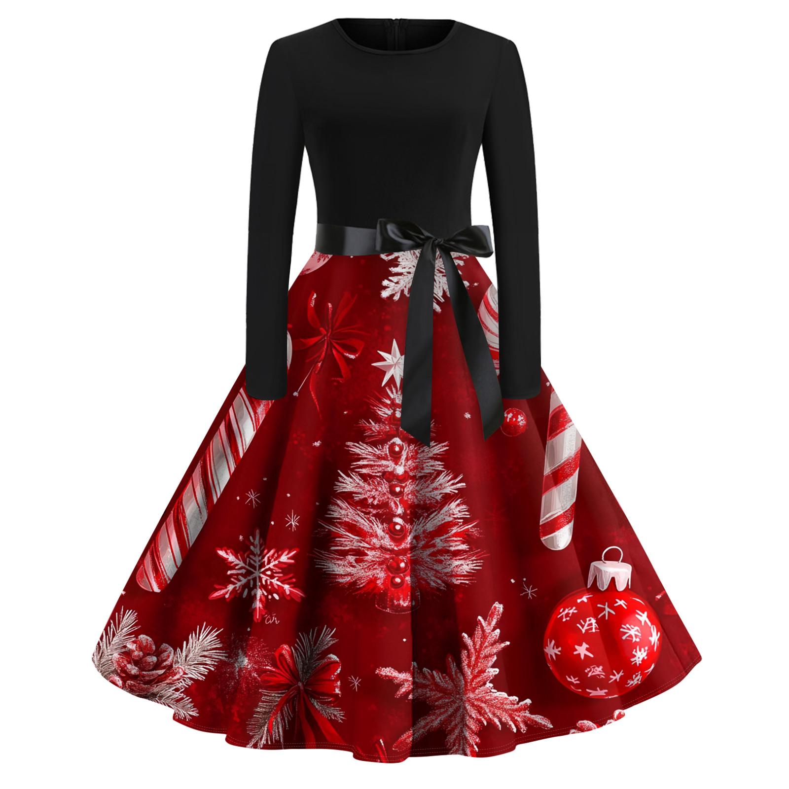 Женское модное повседневное платье приталенного кроя с круглым вырезом, рождественским принтом и длинными рукавами XL