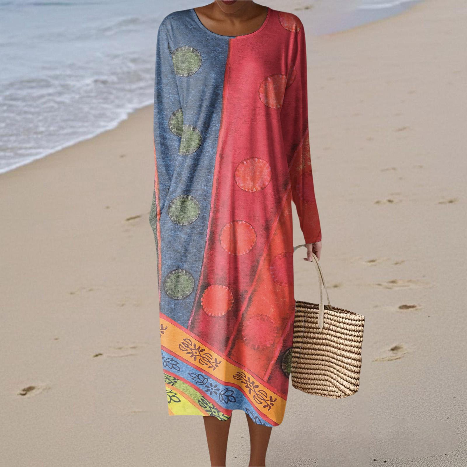 Женское модное повседневное платье с длинным рукавом, в стиле ретро, с цветочным принтом, круглым вырезом и карманом, элегантное и сдержанное. S