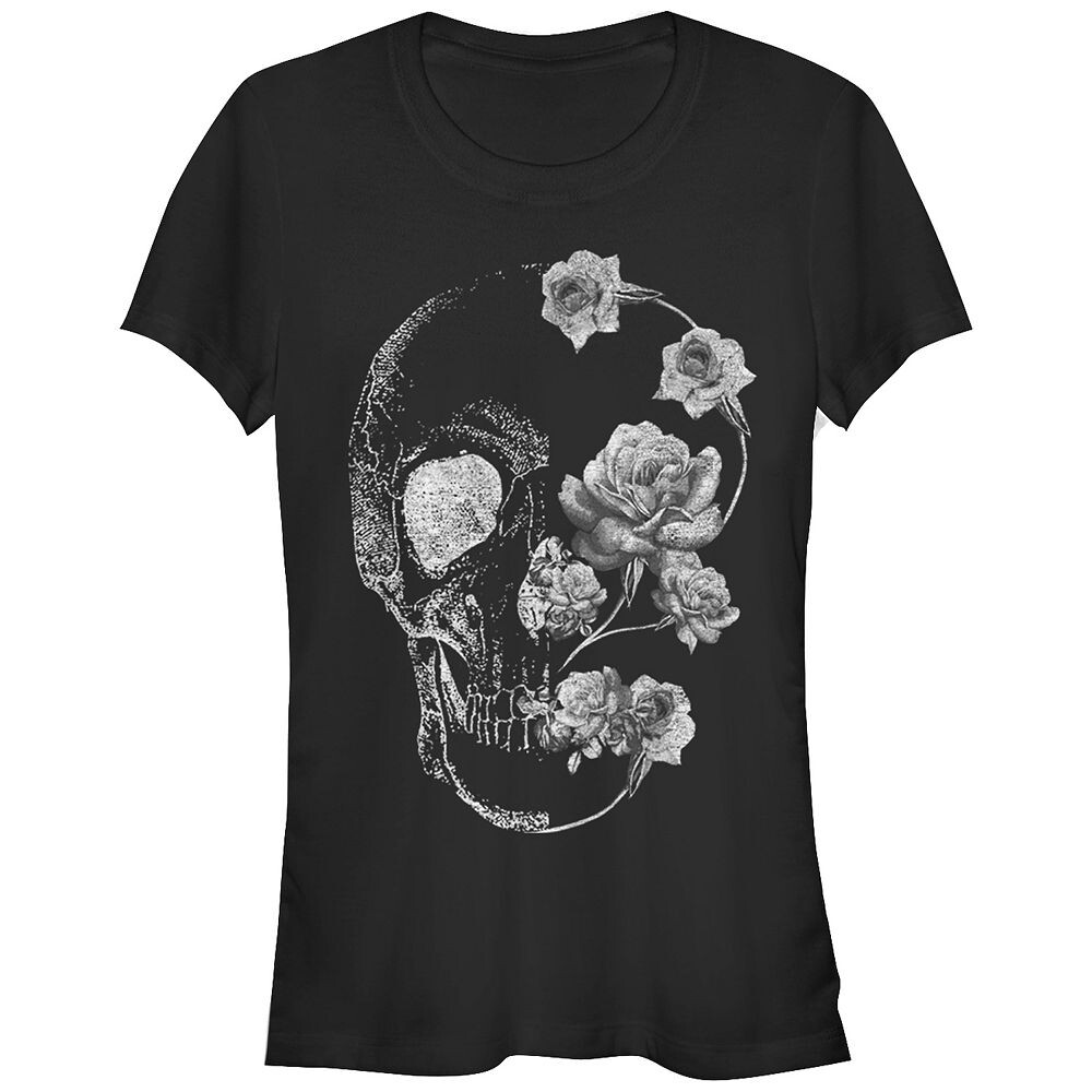 Белая приталенная футболка с разрезом и цветочным принтом для юниоров, черный
