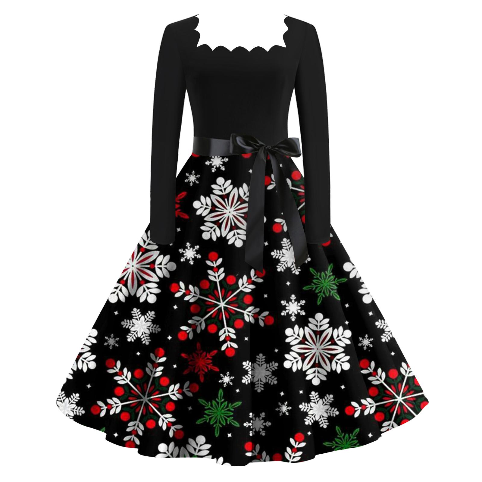 Женское модное ретро вечернее платье с длинным рукавом, квадратным вырезом и рождественским принтом XXXL чёрный