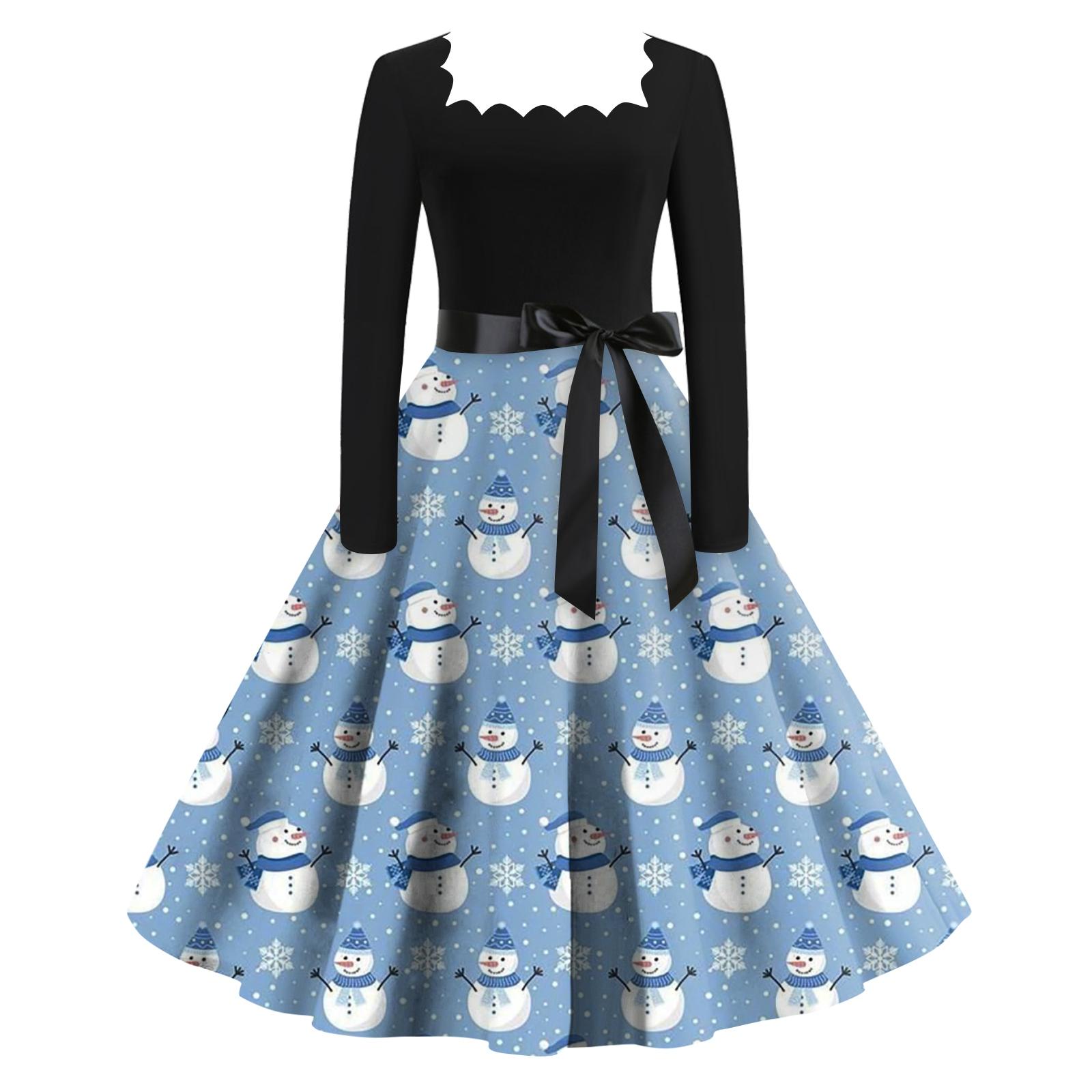 Женское модное ретро вечернее платье с длинным рукавом, квадратным вырезом и рождественским принтом XXXXL