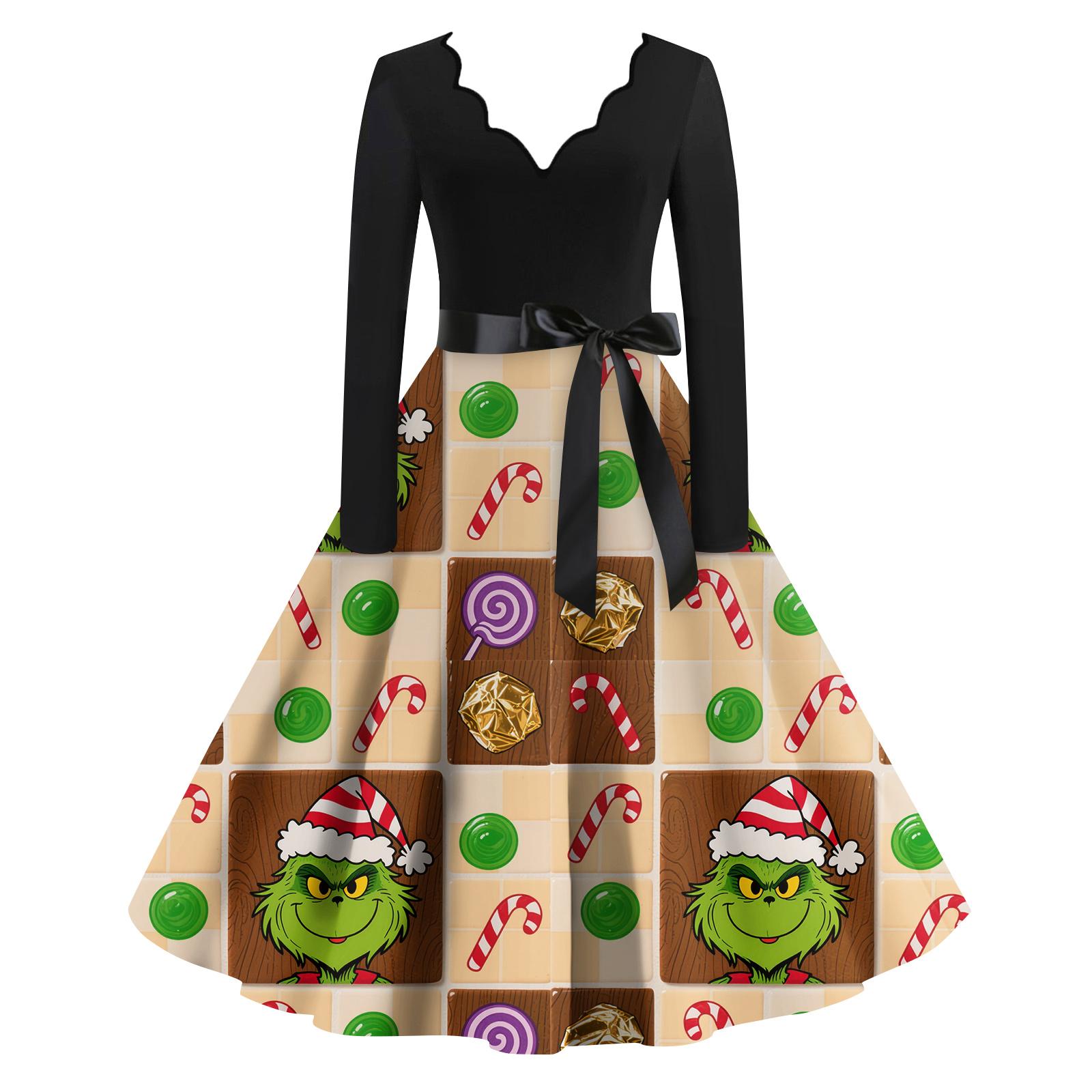 Женское модное ретро платье с длинным рукавом, квадратным вырезом, рождественским принтом, вечернее платье XXXL