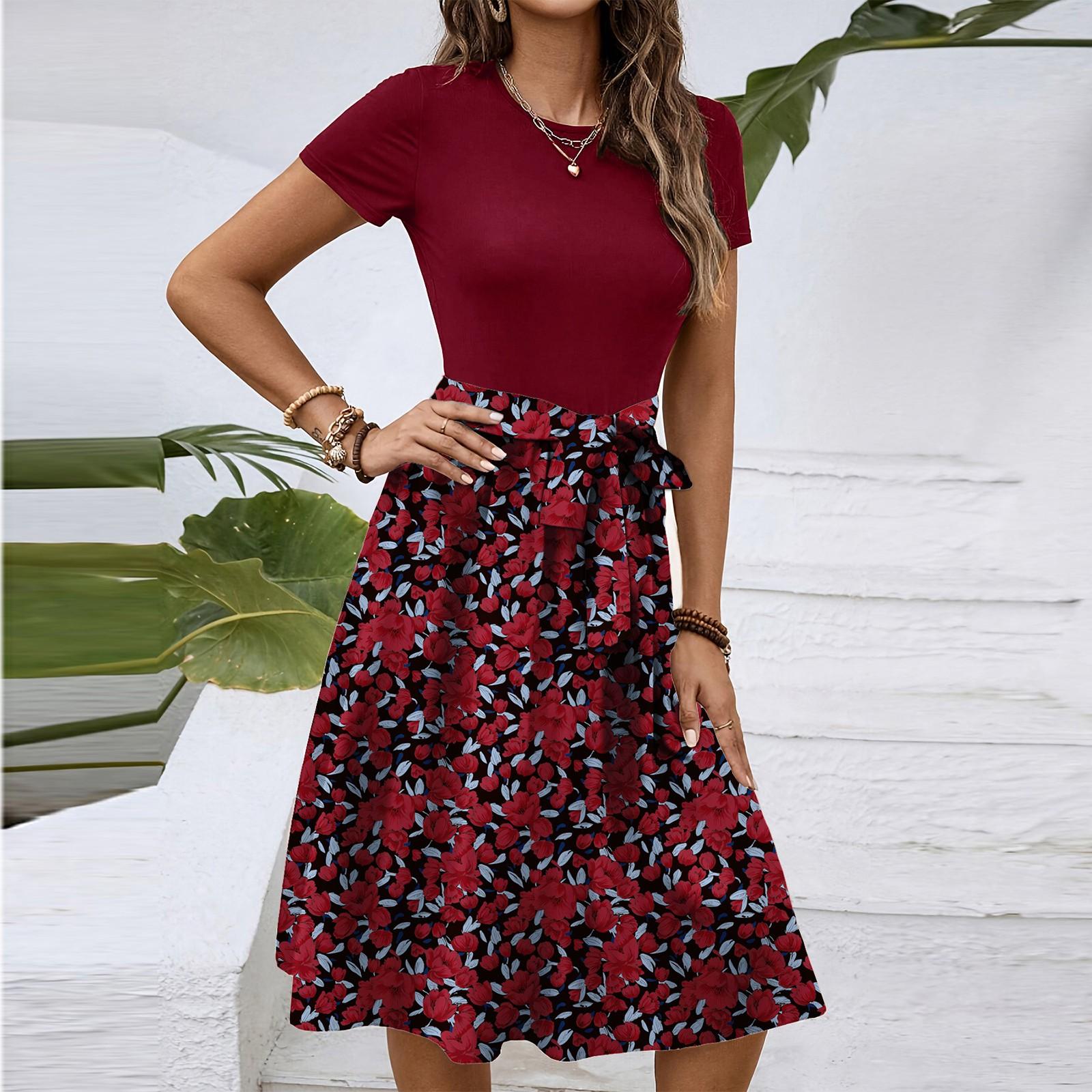 Женское модное ретро-платье с принтом и цветным поясом S винный