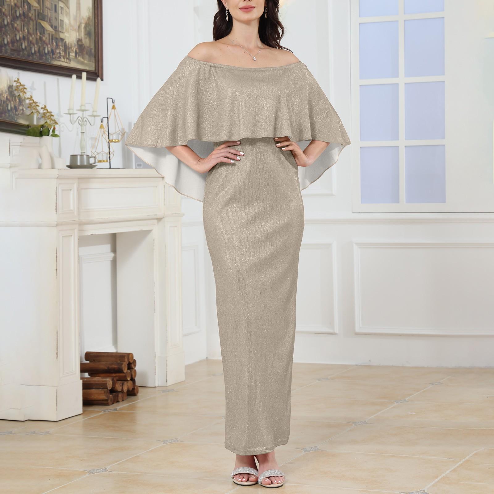 Женское модное сексуальное однотонное вечернее платье с открытыми плечами, облегающее платье с пайетками и запахом на бедрах XXXL
