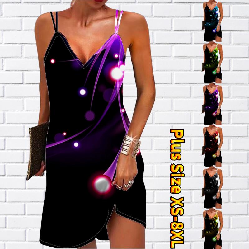 Женское модное сексуальное 3D фиолетовое струящееся легкое платье без бретелек с принтом шаров, свободное платье-бретелька с v-образным вырезом