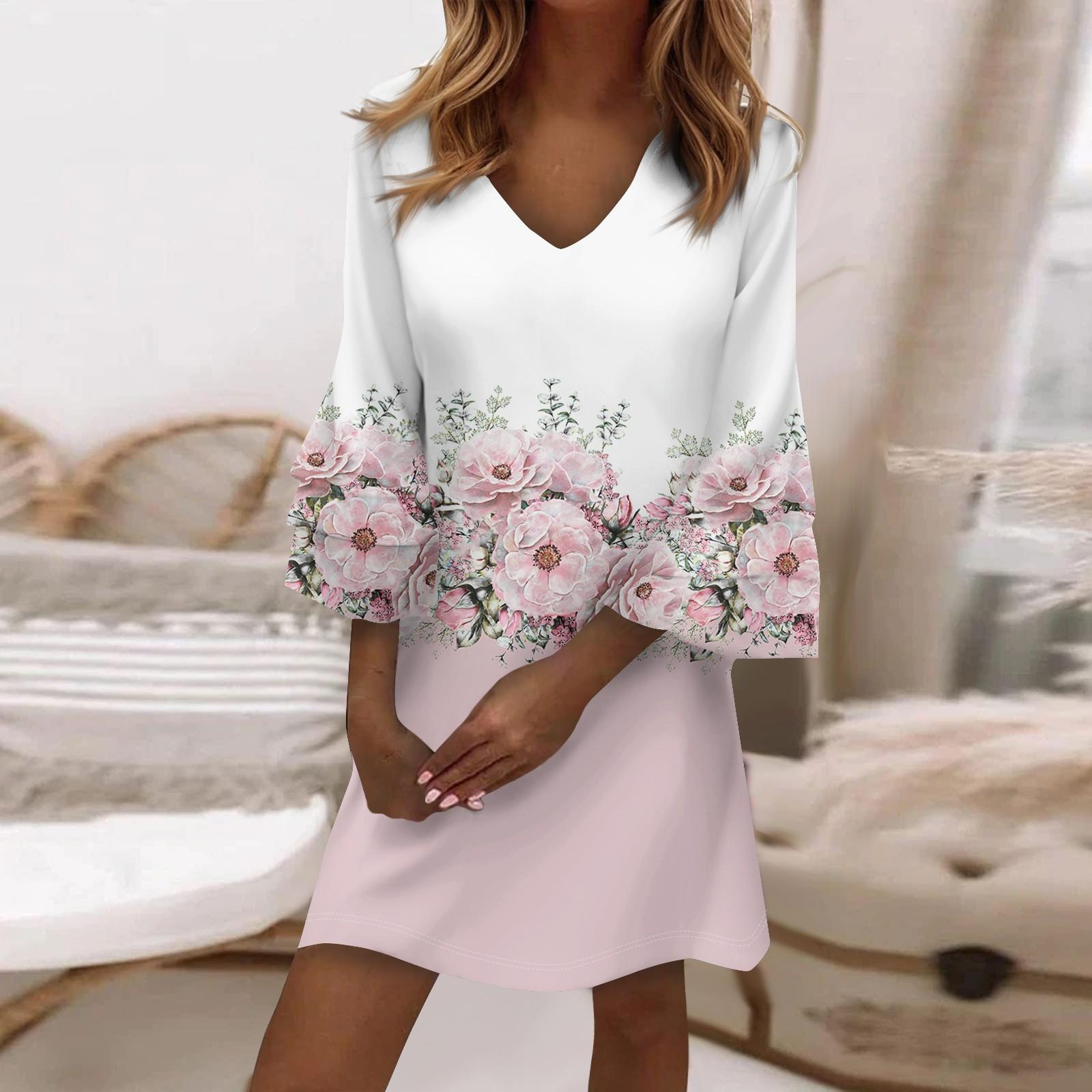 Женское модное темпераментное элегантное платье с v-образным вырезом и рукавами 3/4 со свежим принтом XXXXL розовый