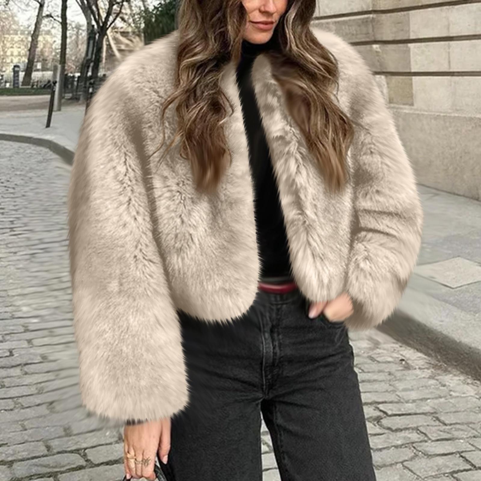 Женское модное теплое пальто с длинным рукавом однотонное меховое XL светло-серый