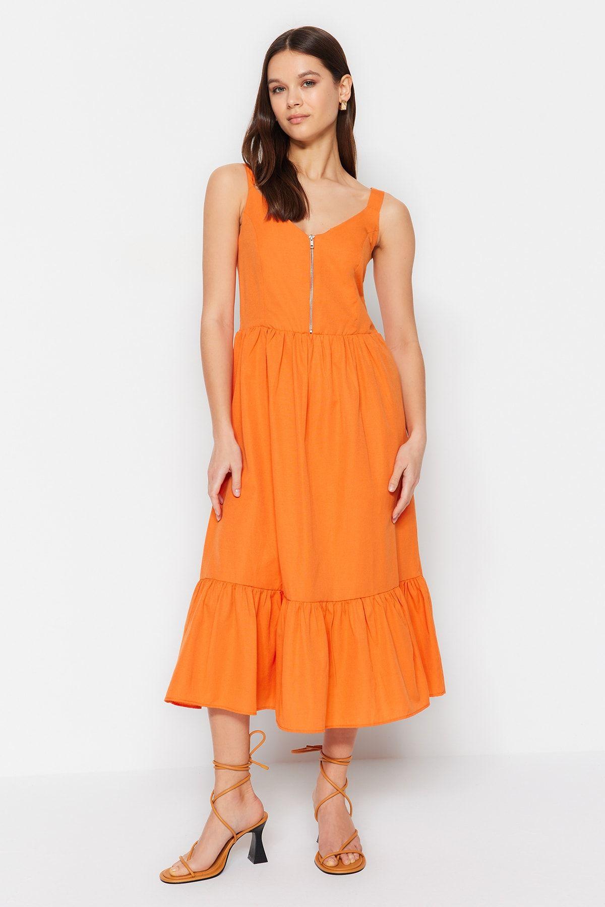 Женское модное тканое платье миди на подкладке с талией и цветком граната XS