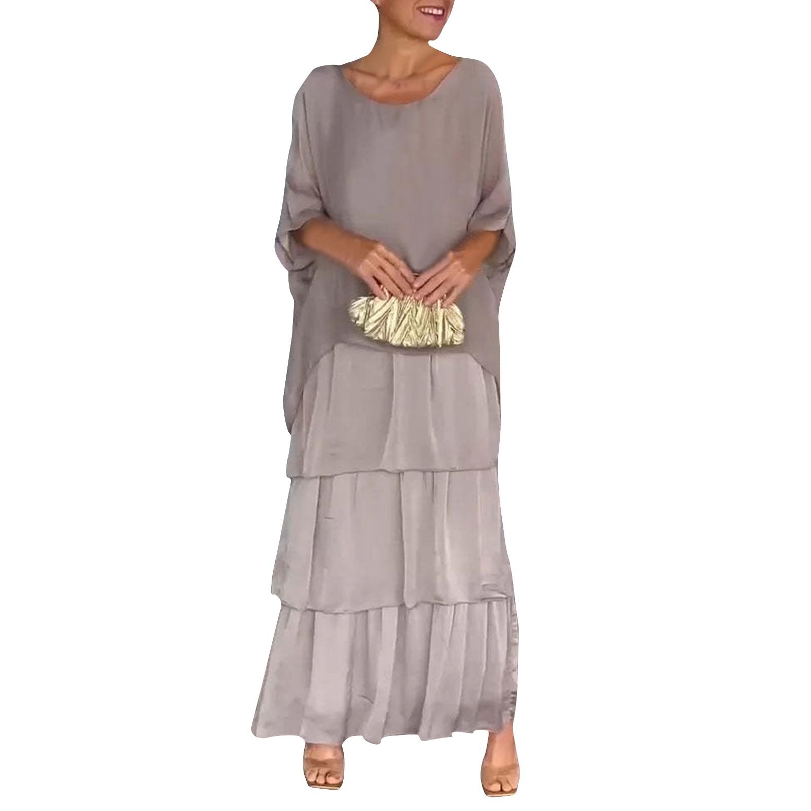 Женское модное шифоновое длинное платье с сетчатым рукавом и круглым вырезом XXXXL серый