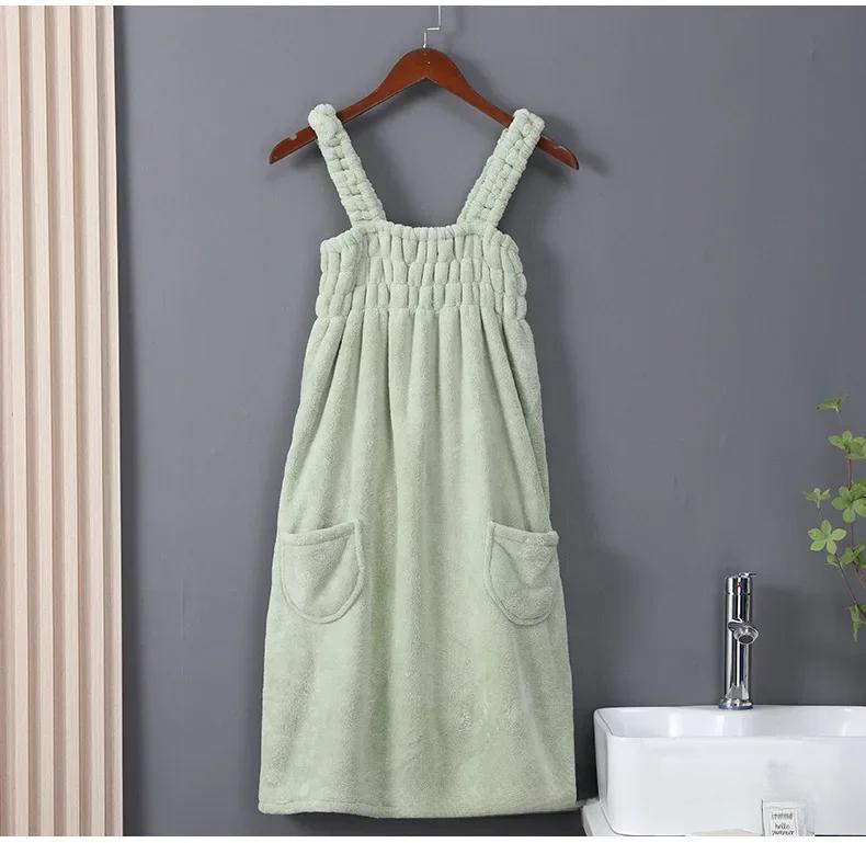 Женское носимое банное полотенце, носимое полотенце, коралловый флис, женская банная юбка, впитывающая банная юбка, полотенце для душа, сауны зелёный