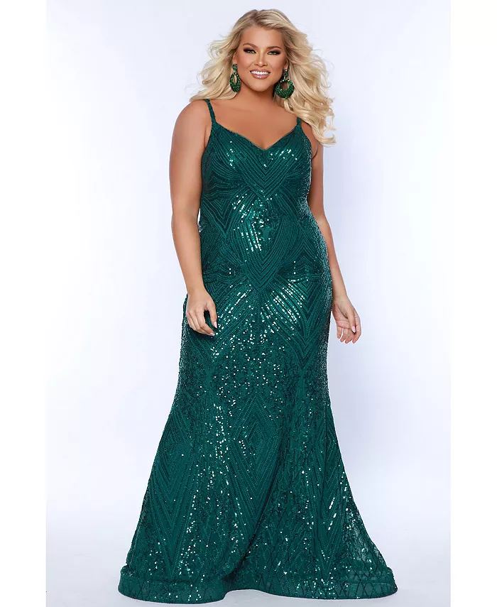 Женское облегающее вечернее платье на тонких бретельках с V-образным вырезом, больших размеров Sydney's Closet, зеленый
