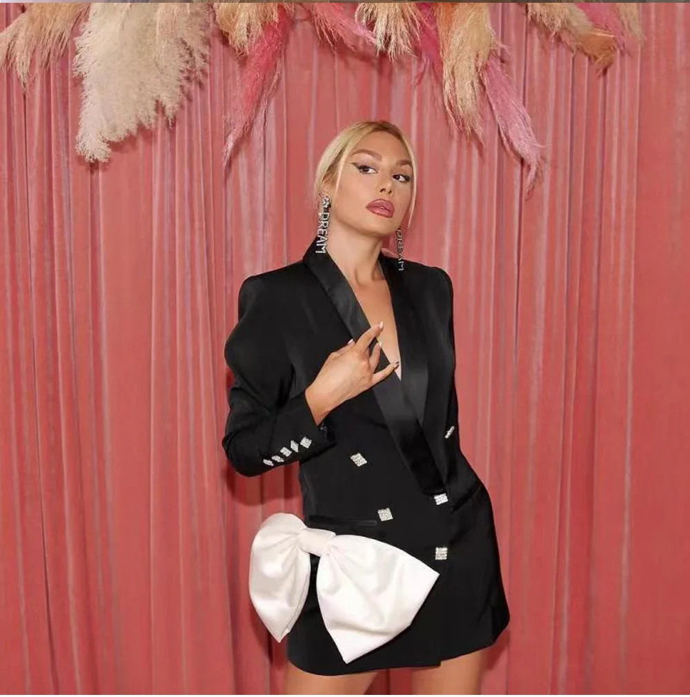 Женское облегающее мини-платье, черное, розовое, белое пикантное платье с длинным рукавом и V-образным вырезом, уличная мода, блейзер с двумя ...