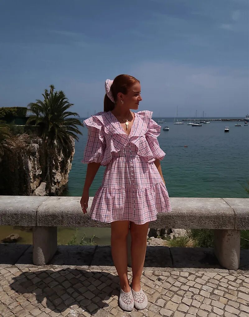 girl's dresses 2021 autumn girl long-sleeved dress black and white plaid yarn baby children lace fashion kids ins, Red;yellow