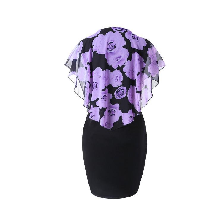 Женское облегающее платье с розовым принтом и шалью – Летний стиль слим-фит L светло-фиолетовый