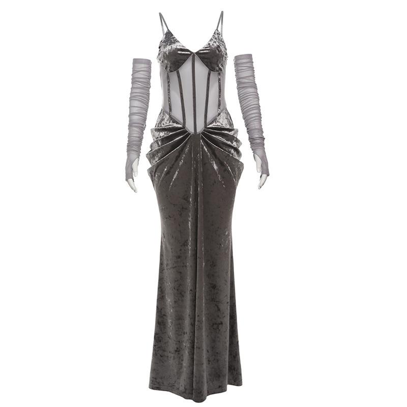 Женское однотонное облегающее модное платье-халтер с V-образным вырезом и высокой талией S серый