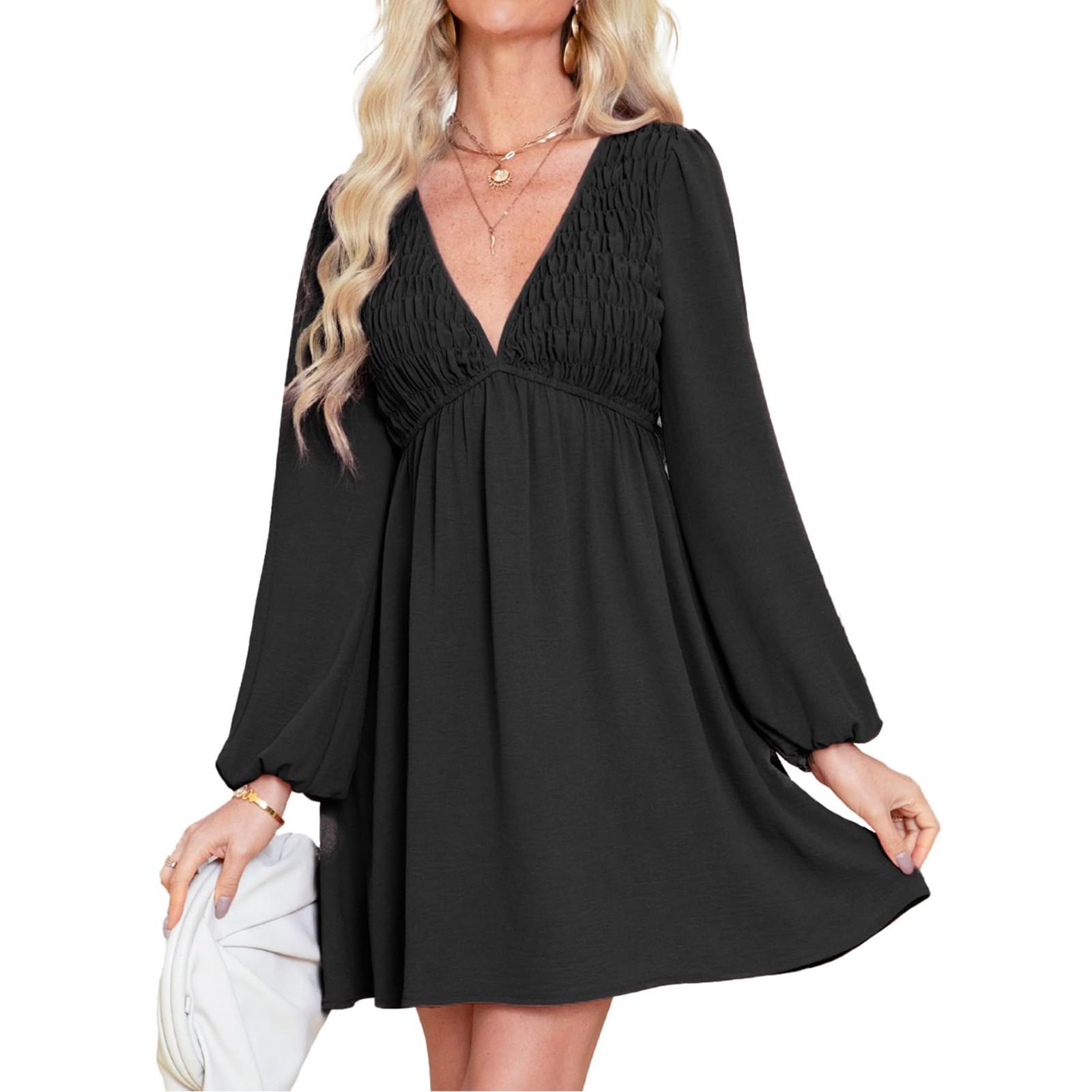 Женское однотонное платье с v-образным вырезом, модная коллекция, с высокой талией и длинными рукавами L чёрный