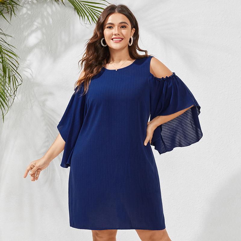Женское однотонное трикотажное платье миди с холодными плечами и нерегулярными рукавами