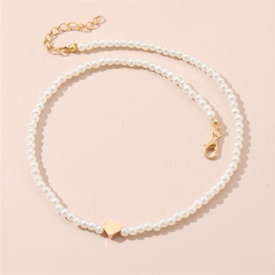 Женское ожерелье в богемном стиле с подвеской в форме сердца из искусственного жемчуга, регулируемая длина шеи белый
