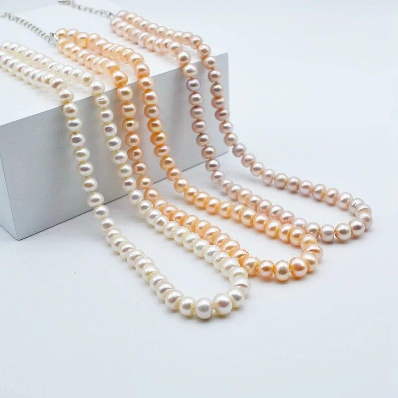 Женское ожерелье из натурального пресноводного жемчуга диаметром 7-8 мм, простое ожерелье, белое/розовое/фиолетовое/жемчужное ожерелье, подарок на день матери