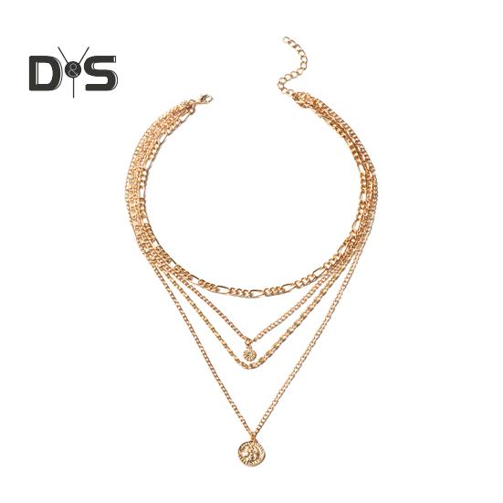 Женское ожерелье, многослойная подвеска в виде монеты, толстая полая цепь, регулируемая длина, гальванизированное украшение на шею для хип-хоп-клуба и вечеринки в стиле панк золотистый