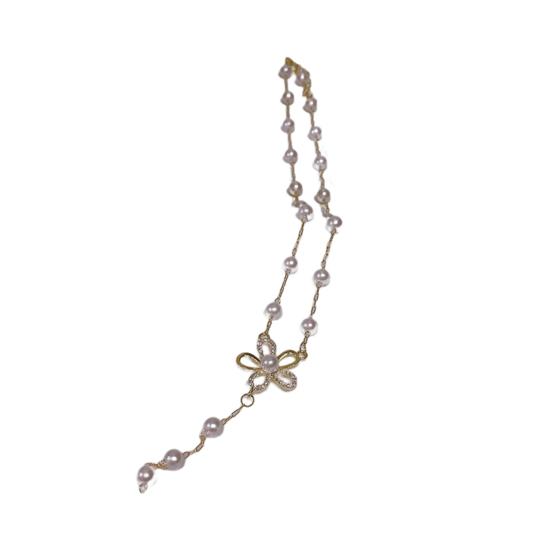 Женское ожерелье со сверкающими стразами и цветком, изящное элегантное ожерелье из блестящего искусственного жемчуга на ключице, модное ожерелье