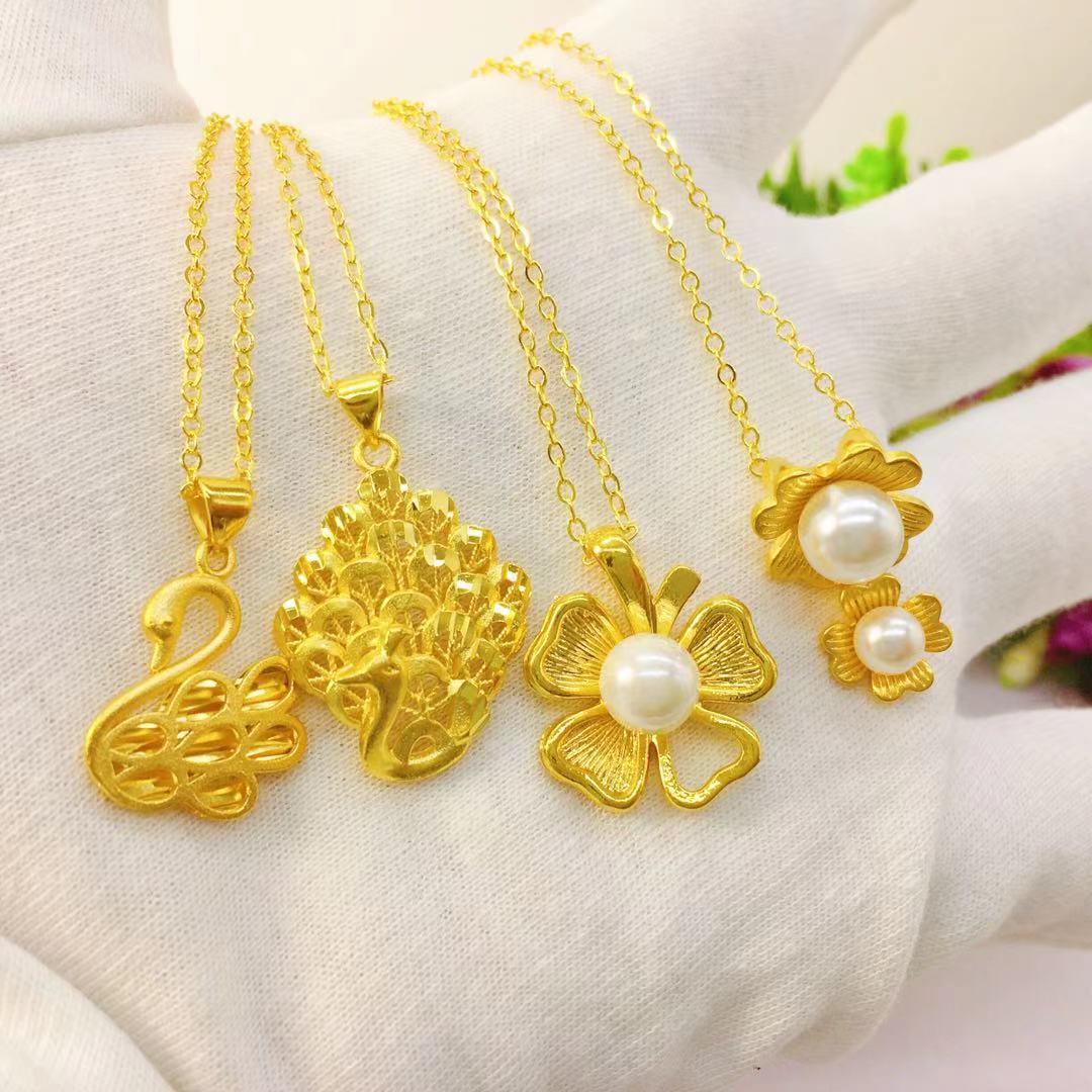 Женское ожерелье с подвеской в виде лебедя, павлина и жемчуга, вьетнамское песочное золото получает