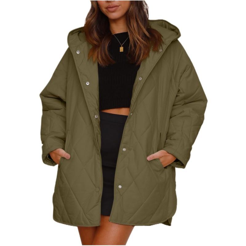 Женское осенне-зимнее однотонное легкое повседневное пальто свободного кроя с капюшоном в виде ромба 2XL