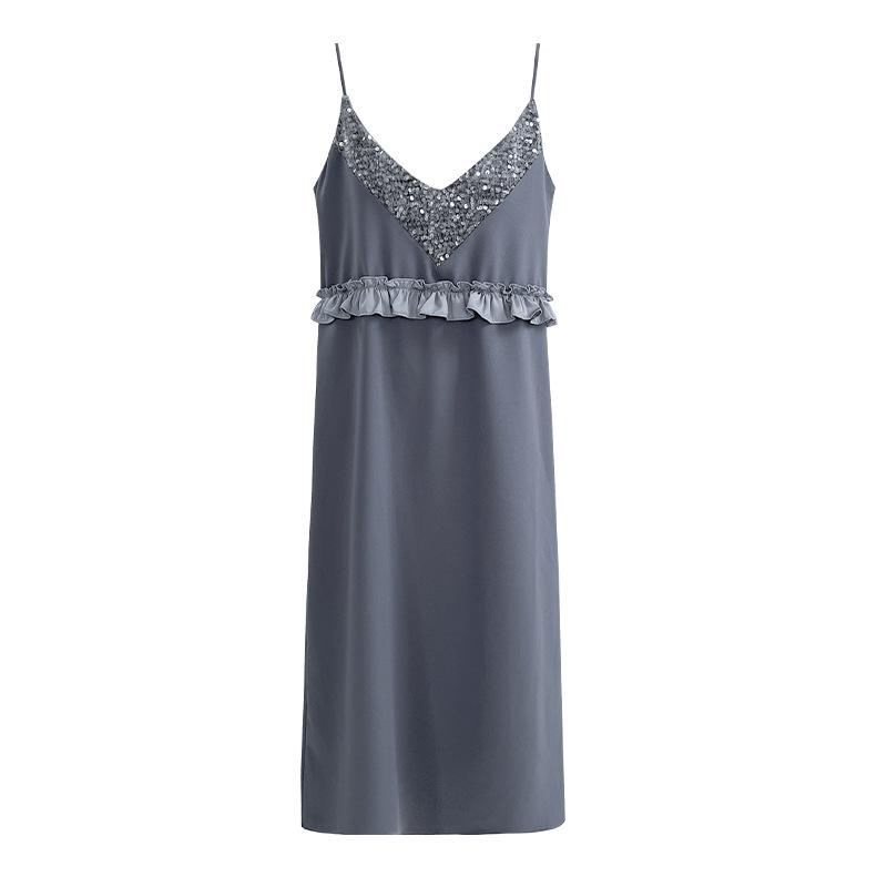Женское осенне-зимнее платье-комбинация в стиле французской моды с пайеточной лоскутной отделкой M серый